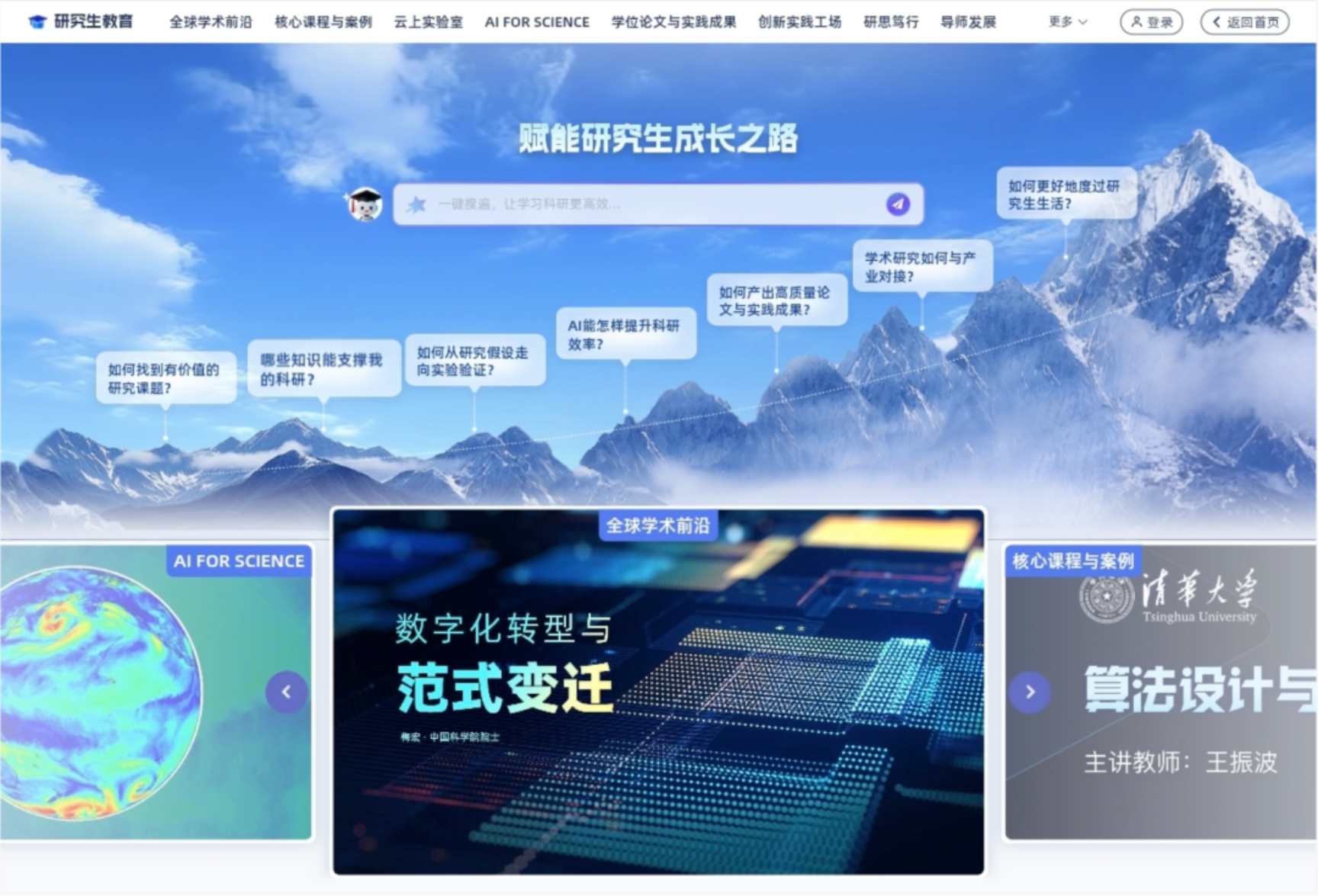研究生教育板块采用“8+3”整体架构,设置“全球学术前沿”“云上实验室”等八大核心模块,“卓越工程师培养”等三大改革专题。